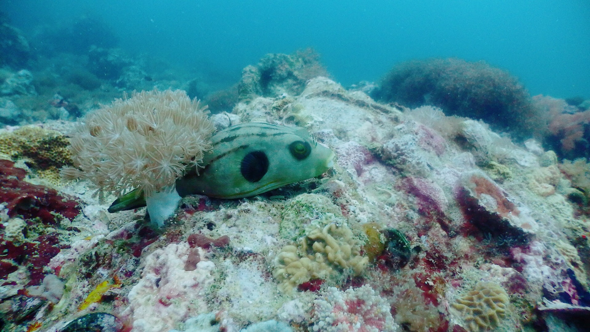這次的主要的潛水點是“居庸艦”,這是一個人工魚礁。是一艘退役軍艦投放為軍艦礁。這裡的海床平坦適合大型人造物投放。深度大約在40米之上。