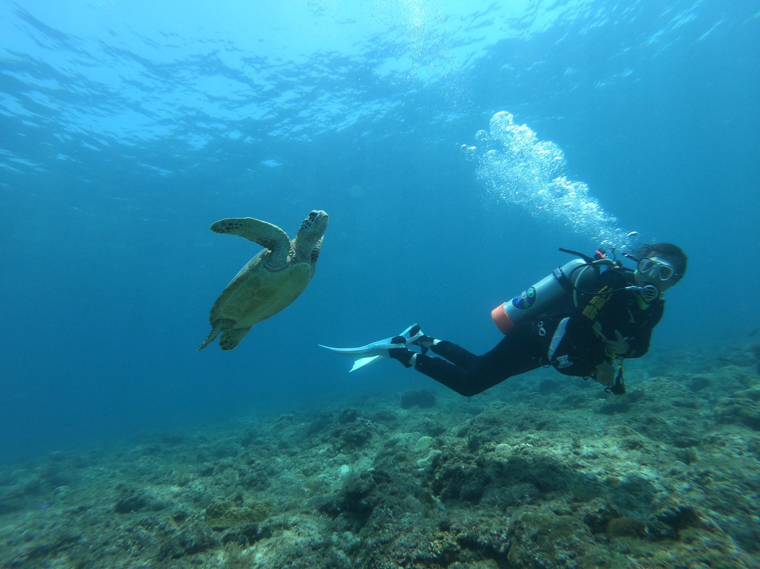 小琉球!一年四季都適合潛水的地方。全世界潛水的地方唯一海龜看到飽,多年前台灣的綠蠵龜保育有成。讓大家都可以隨時隨地跟海龜一起在海底遨遊,這是無比的幸福呀!!!!