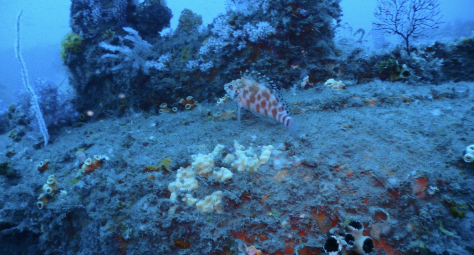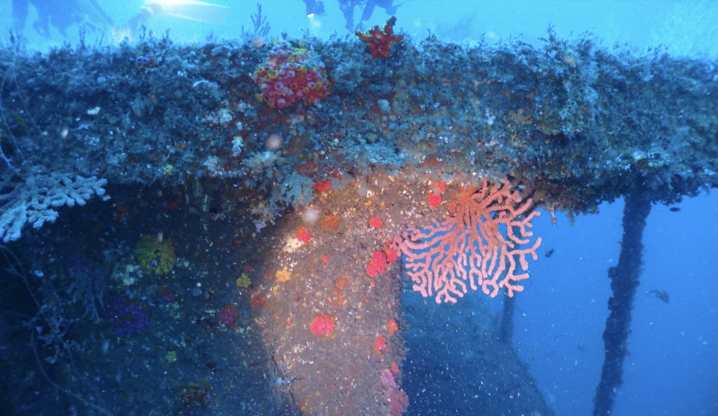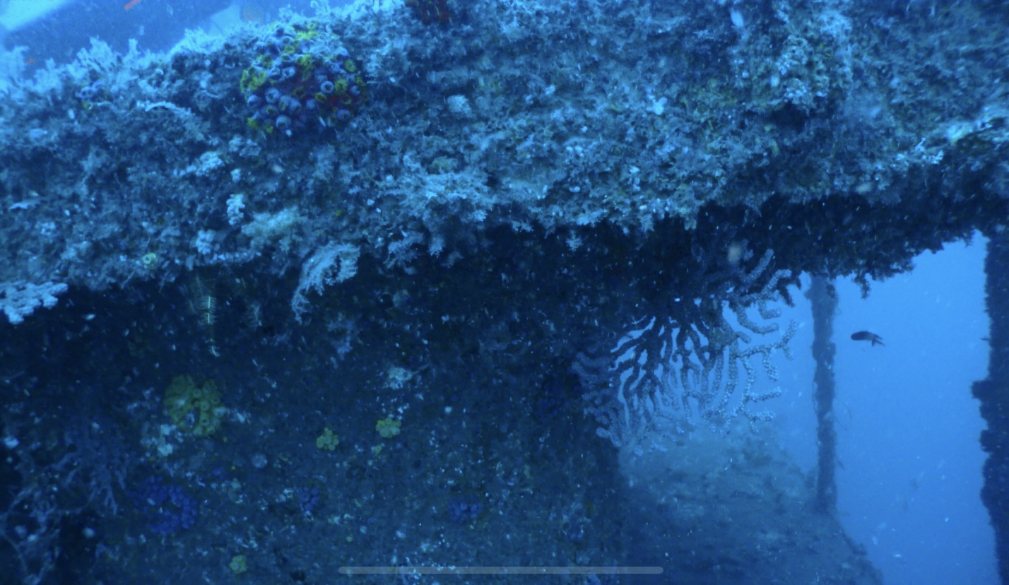 這次的主要的潛水點是“居庸艦”,這是一個人工魚礁。是一艘退役軍艦投放為軍艦礁。這裡的海床平坦適合大型人造物投放。深度大約在40米之上。