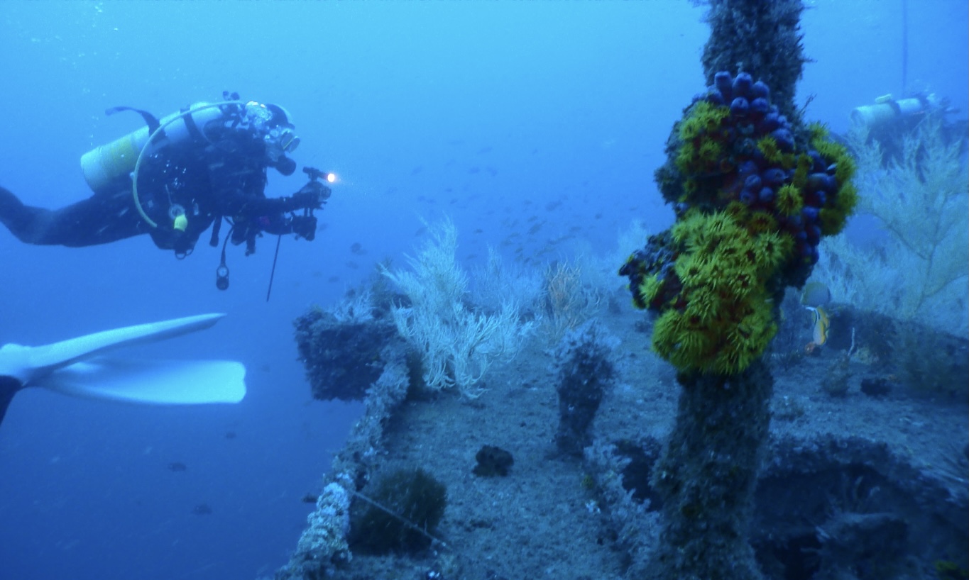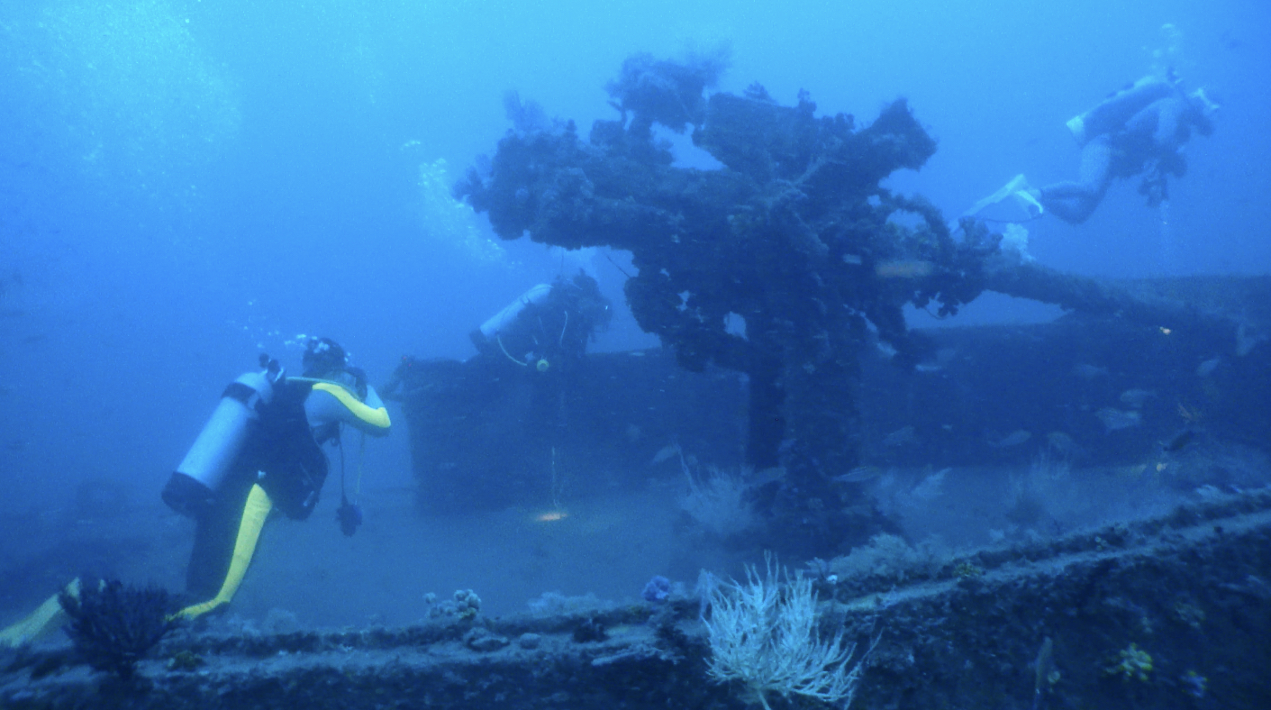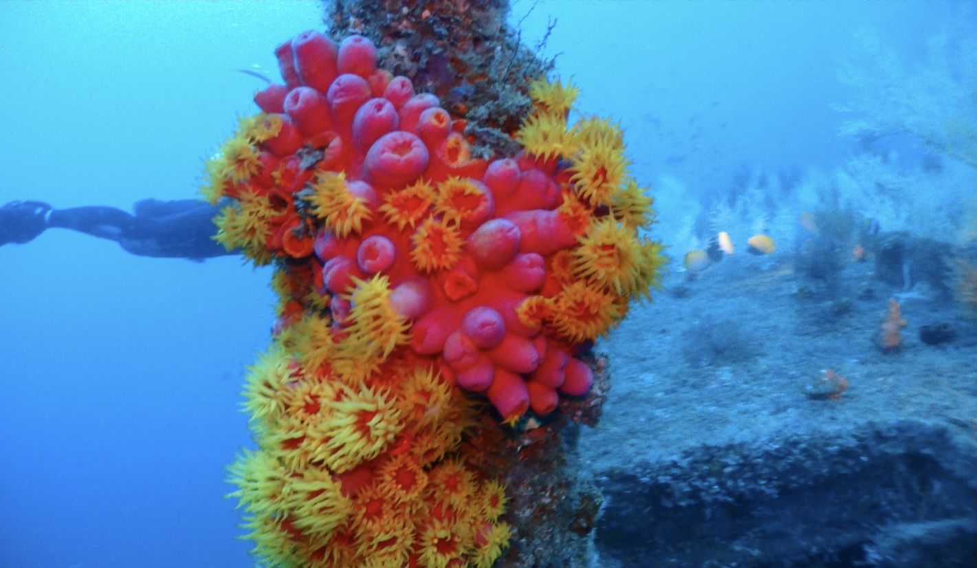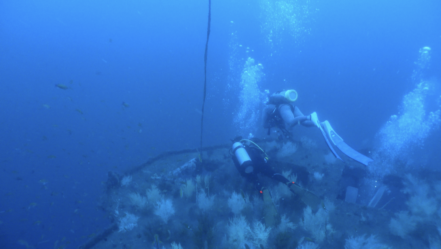 這次的主要的潛水點是“居庸艦”,這是一個人工魚礁。是一艘退役軍艦投放為軍艦礁。這裡的海床平坦適合大型人造物投放。深度大約在40米之上。