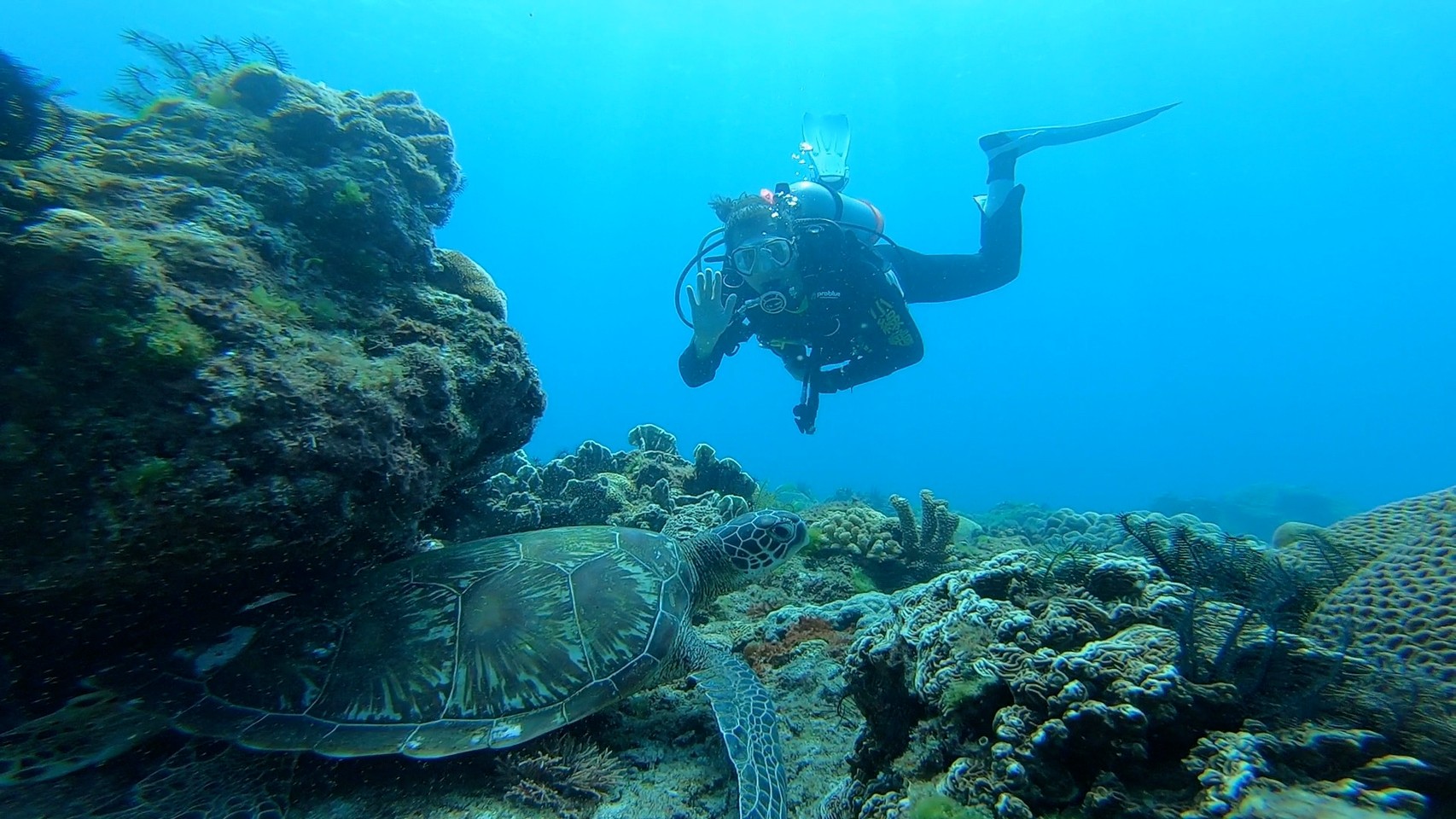 小琉球!一年四季都適合潛水的地方。全世界潛水的地方唯一海龜看到飽,多年前台灣的綠蠵龜保育有成。讓大家都可以隨時隨地跟海龜一起在海底遨遊,這是無比的幸福呀!!!!